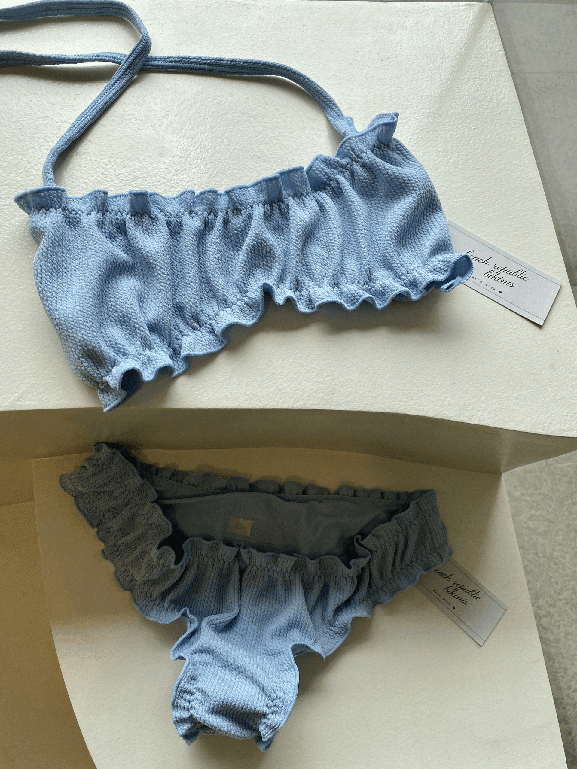 featuring our bestseller swimwear x lougewear – the intimate bikini in baby blue, a versatile ruched design made with premium ribbed, with the softest fabric lining.