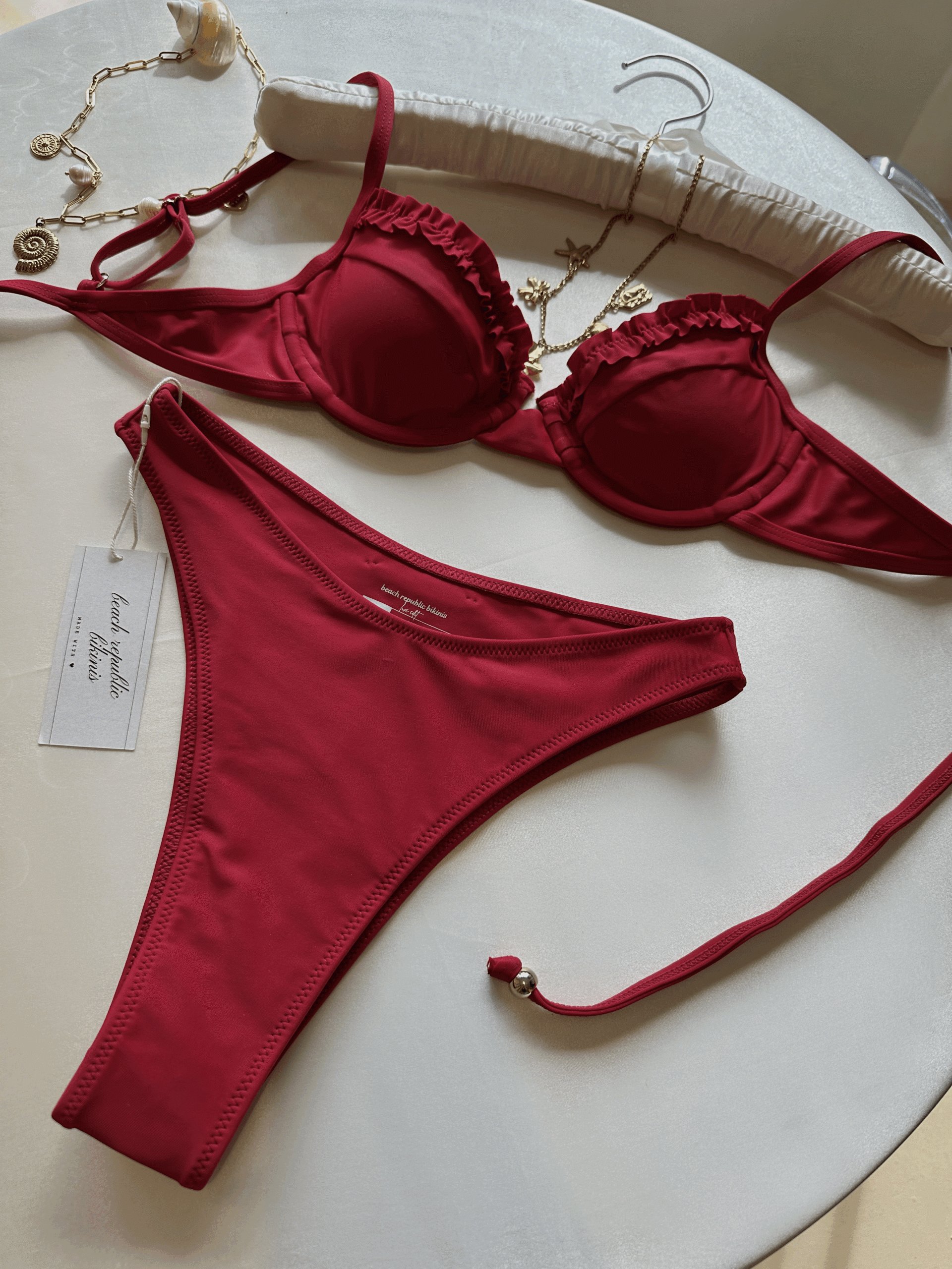 our Signature Push-Up Set, now in a rich cherry red hue. This bold & feminine bikini features: