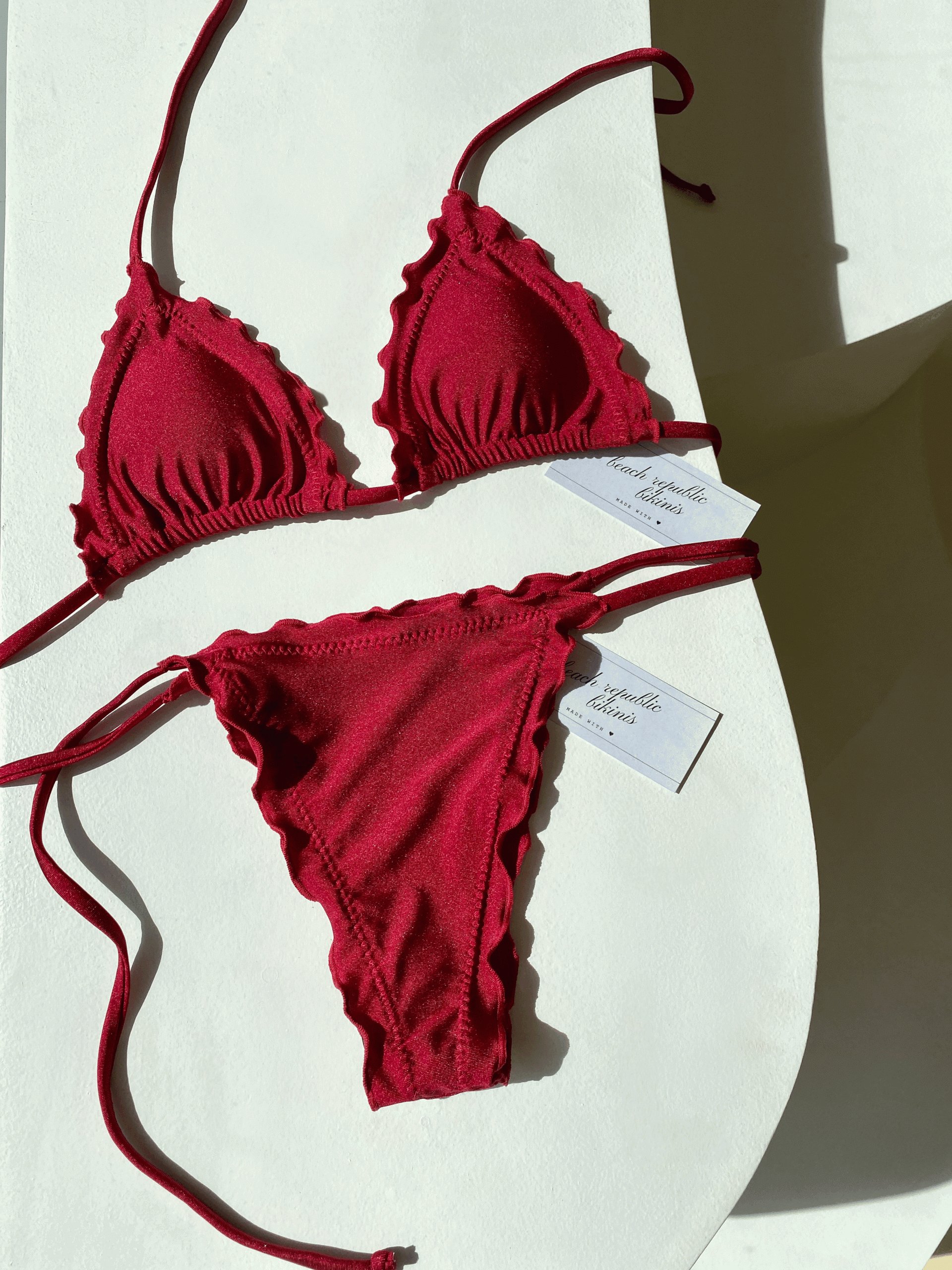 classic side tie adjustable cheeky cut bottom, wear it high rise to accentuate your curves.